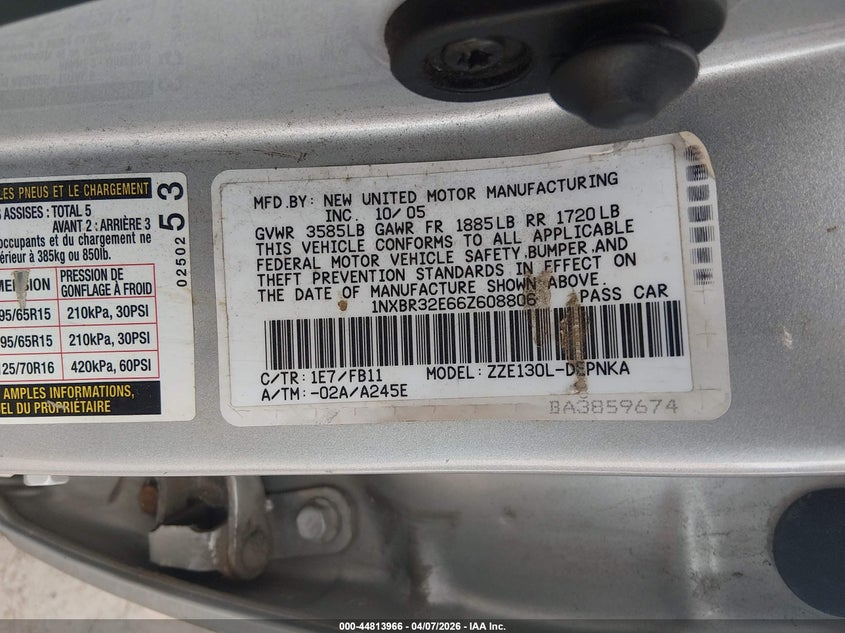 • 1NXBR32E66Z608806