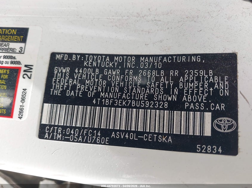 • 4T1BF3EK7BU592328