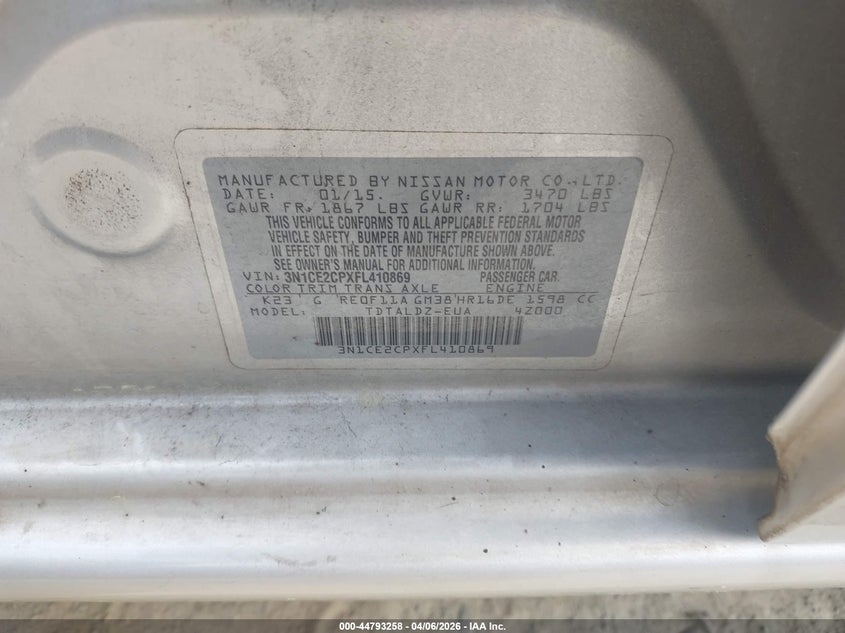 2015 NISSAN VERSA NOTE S (SR)/S PLUS/SL/SR/SV for Sale in Acworth, GA