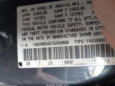 • 1HGCM66407A099889