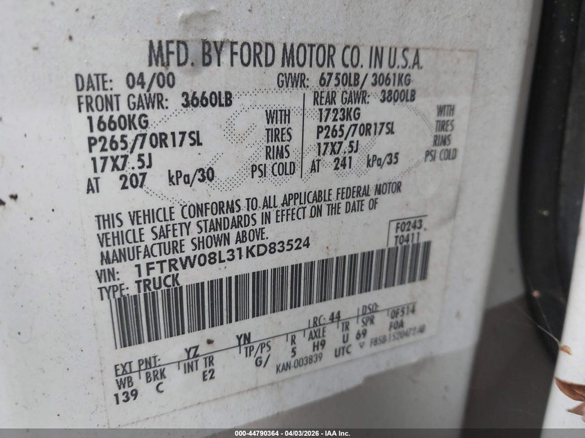 • 1FTRW08L31KD83524