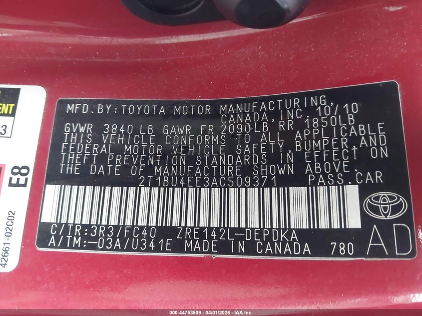 • 2T1BU4EE3AC509371