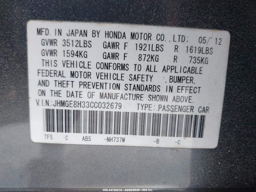 • JHMGE8H33CC032679