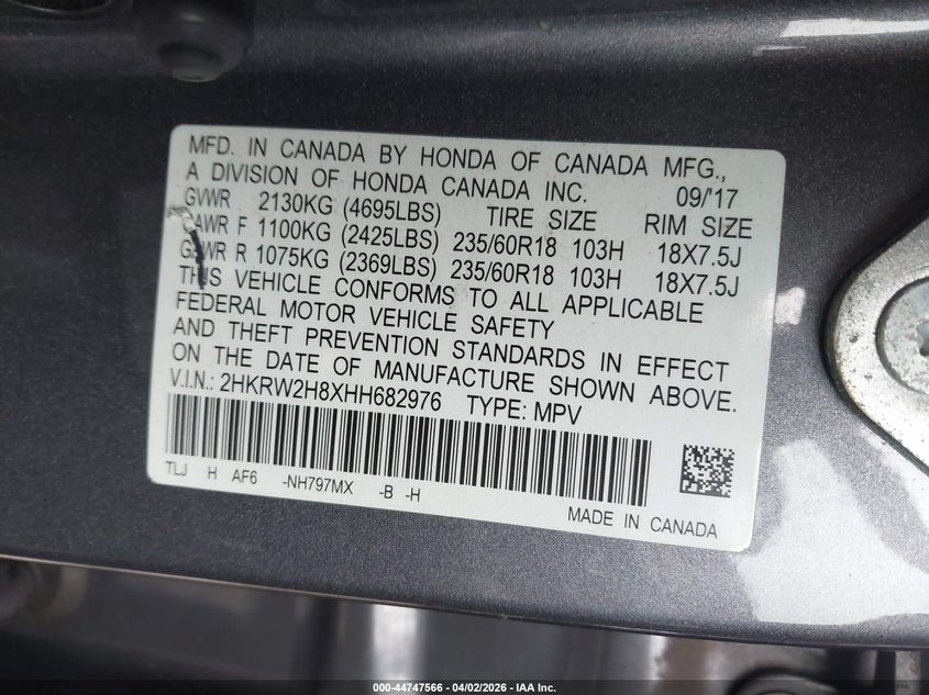 • 2HKRW2H8XHH682976