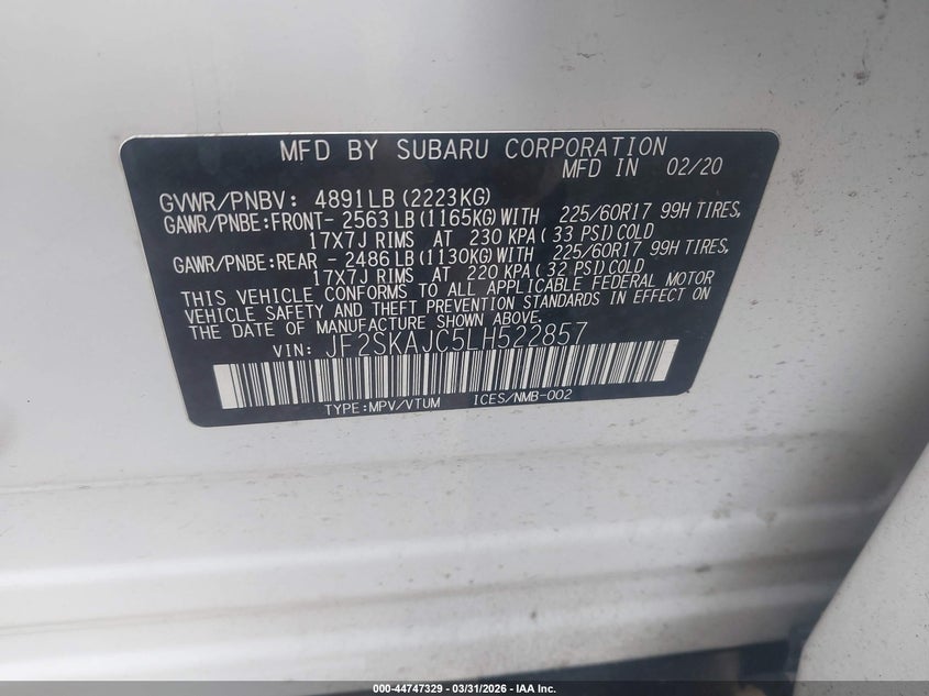 • JF2SKAJC5LH522857