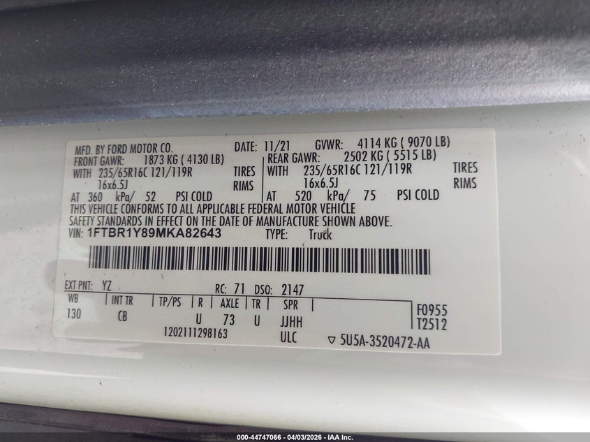 • 1FTBR1Y89MKA82643