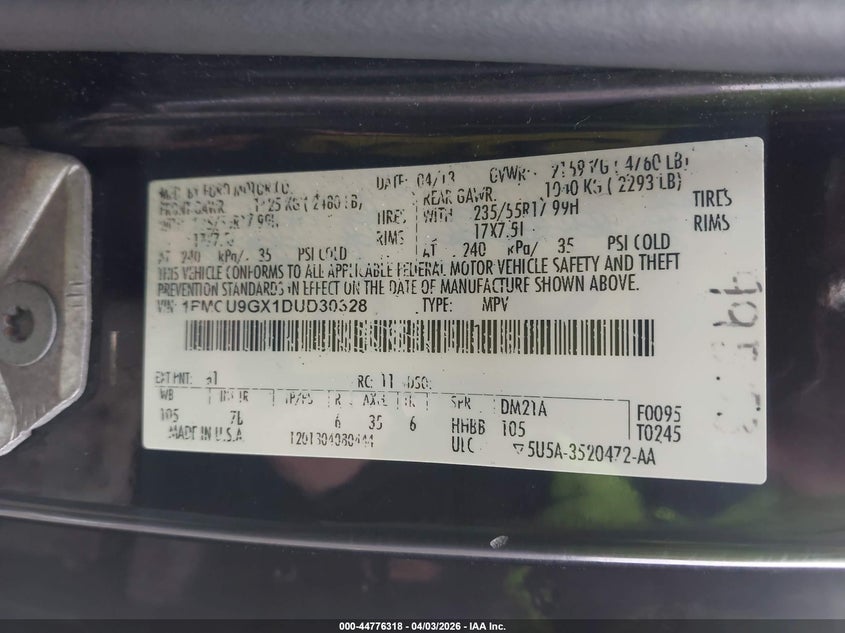 • 1FMCU9GX1DUD30328