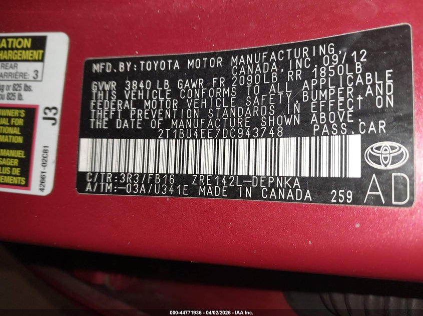 • 2T1BU4EE7DC943748