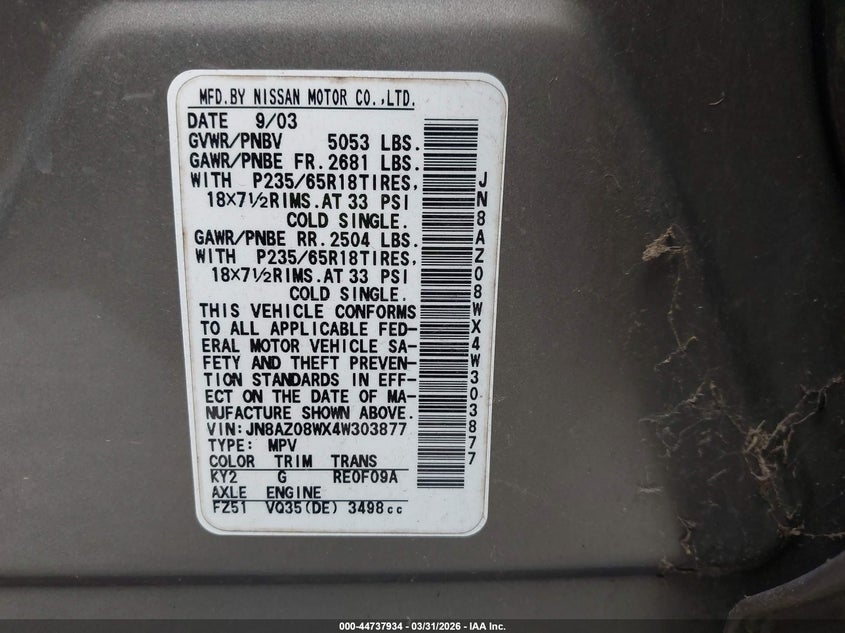 • JN8AZ08WX4W303877
