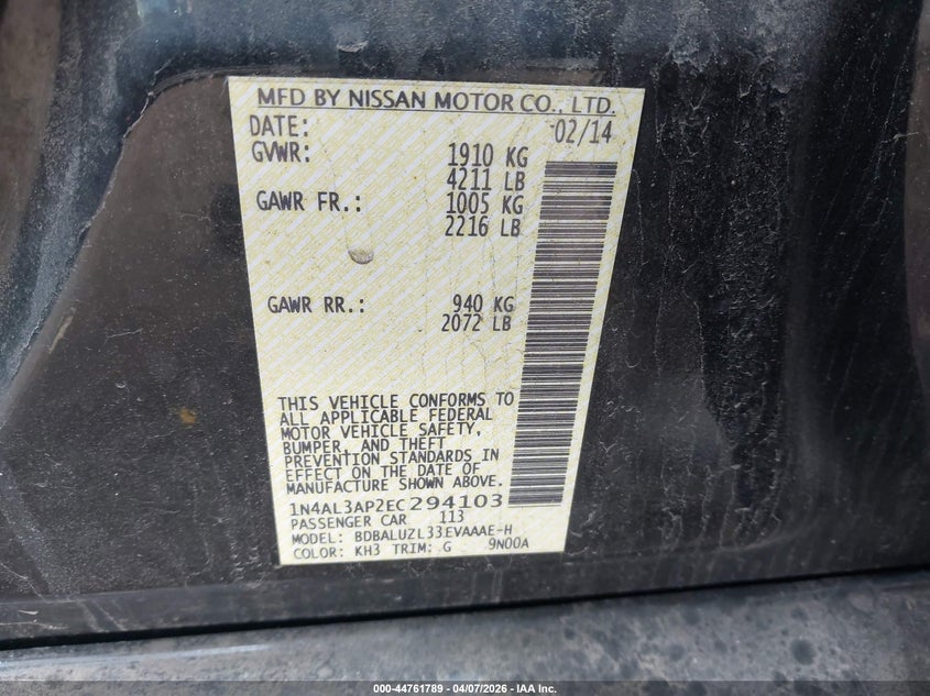 • 1N4AL3AP2EC294103