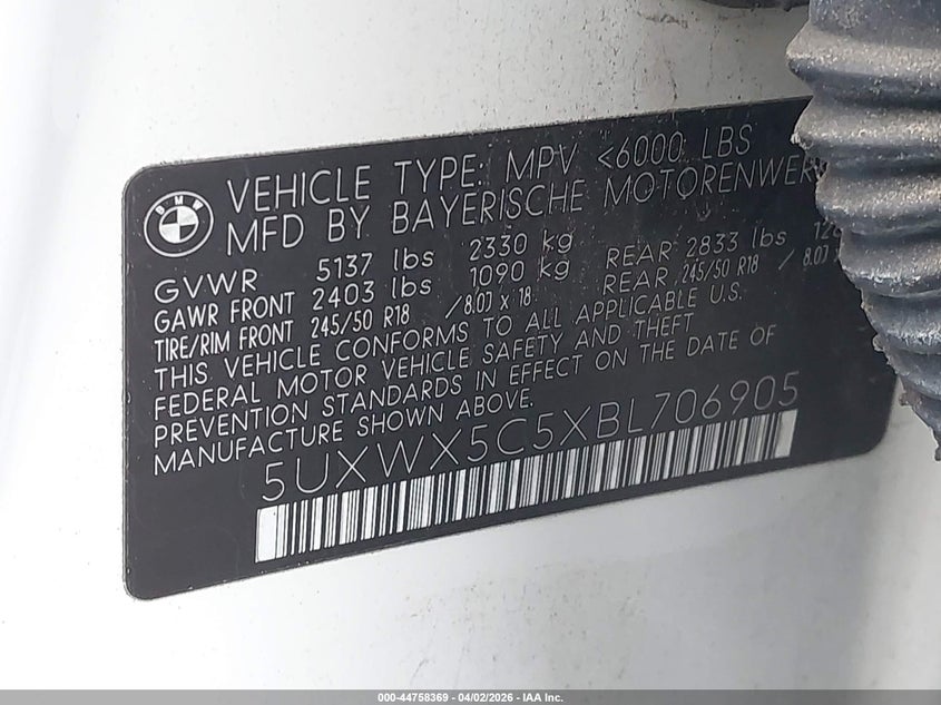 • 5UXWX5C5XBL706905