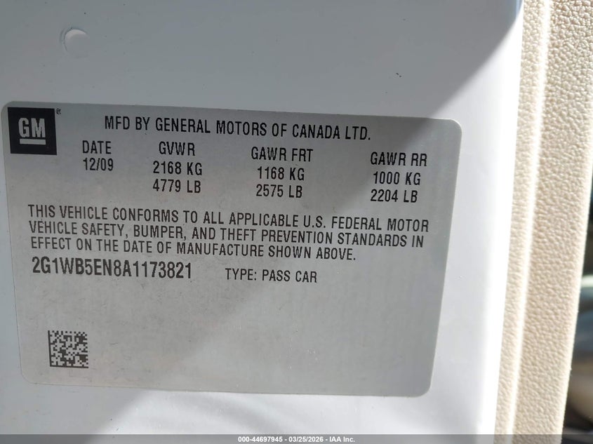 • 2G1WB5EN8A1173821