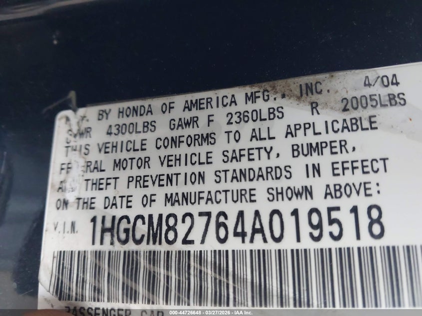 • 1HGCM82764A019518