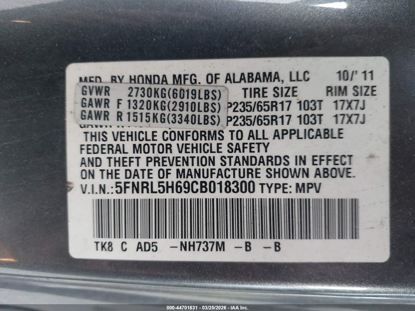 • 5FNRL5H69CB018300