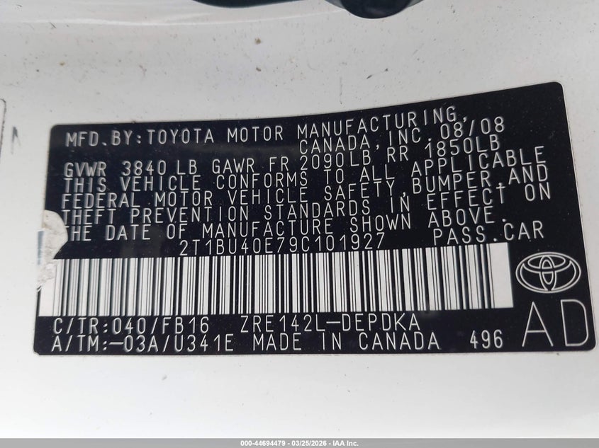 • 2T1BU40E79C101927