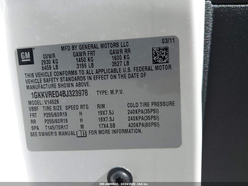 • 1GKKVRED4BJ323978