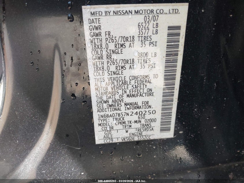 2007 NISSAN TITAN SE for Sale in Acworth, GA