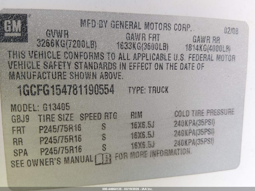 • 1GCFG154781190554