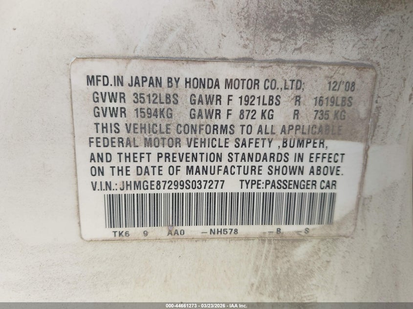 • JHMGE87299S037277