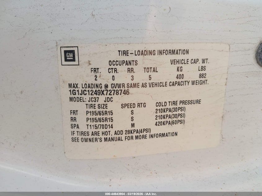 • 1G1JC1249X7278746