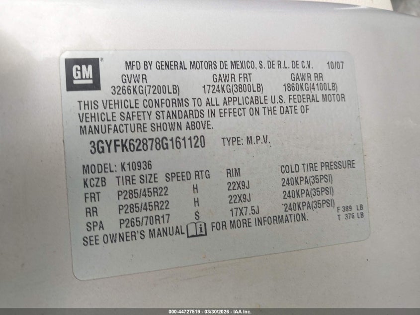 • 3GYFK62878G161120