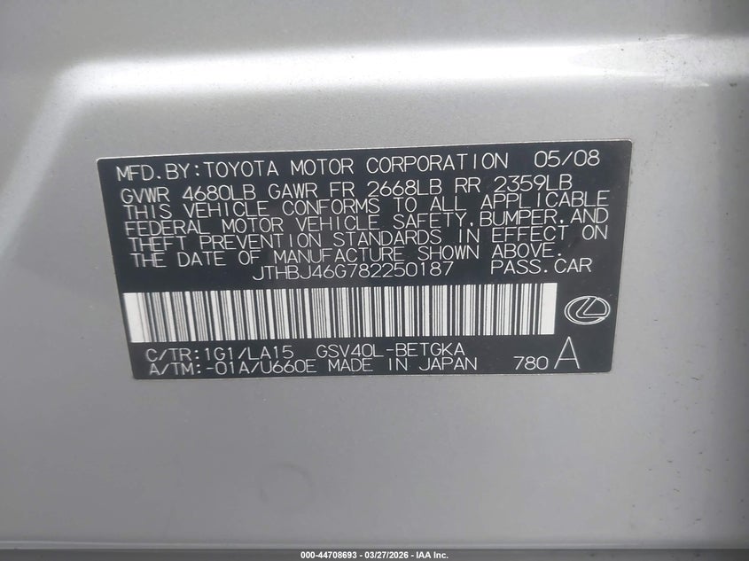 • JTHBJ46G782250187