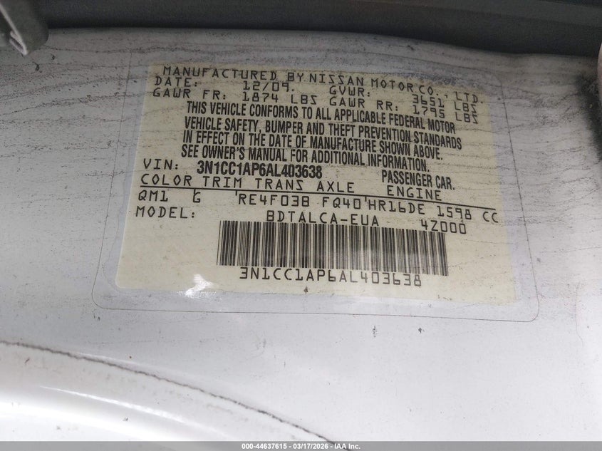• 3N1CC1AP6AL403638