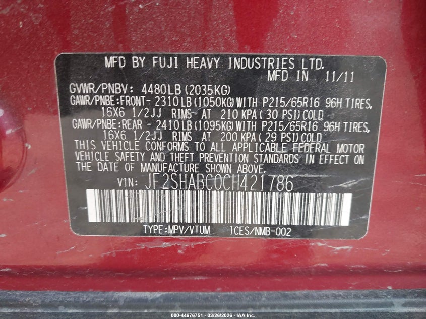 • JF2SHABC0CH421786