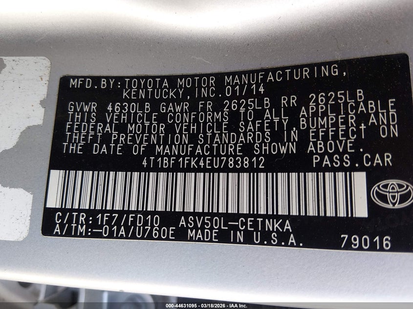 • 4T1BF1FK4EU783812