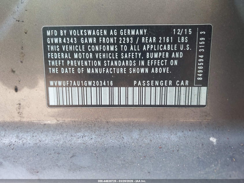 • WVWUF7AU1GW203416