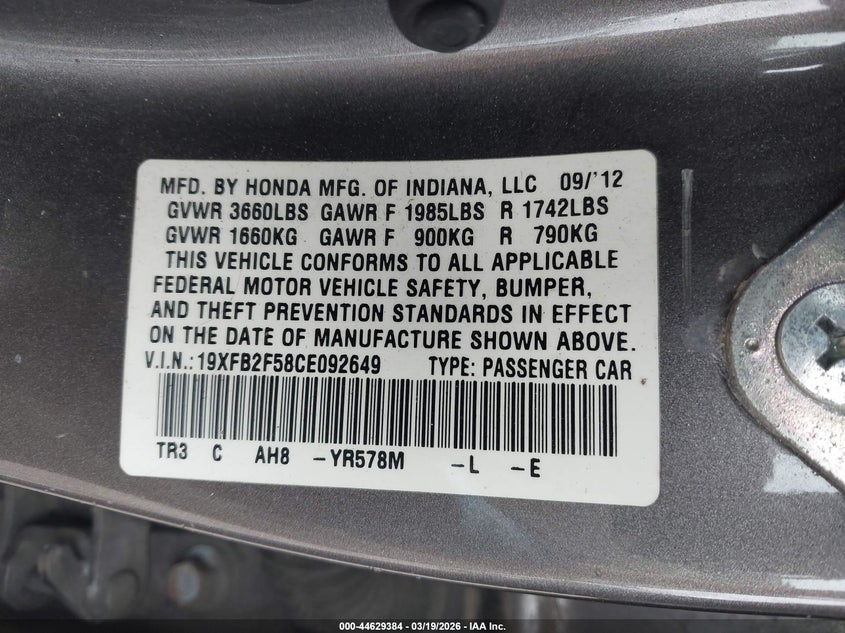 2012 HONDA CIVIC LX for Sale in Medford, NY