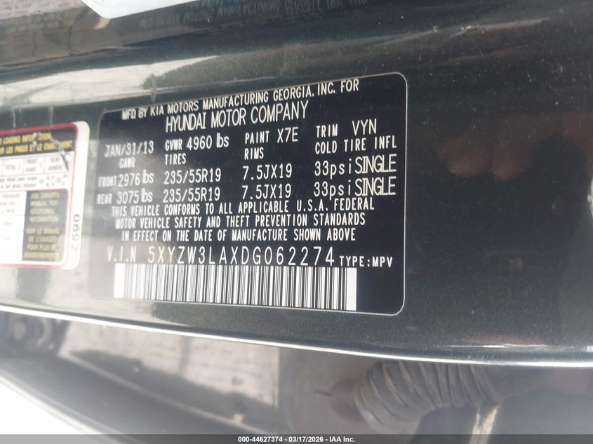 • 5XYZW3LAXDG062274