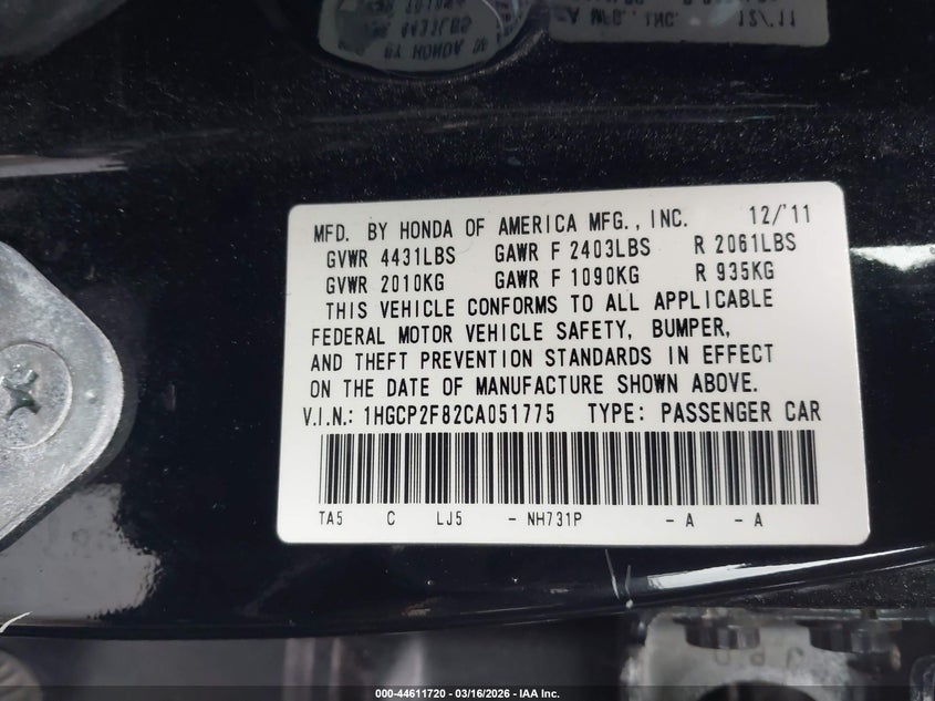 • 1HGCP2F82CA051775