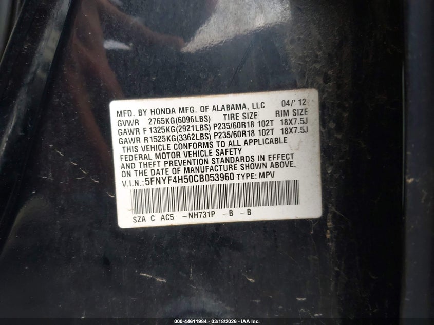 • 5FNYF4H50CB053960