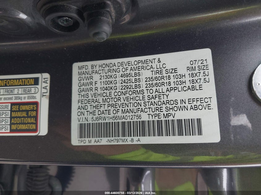 • 5J6RW1H56MA012756