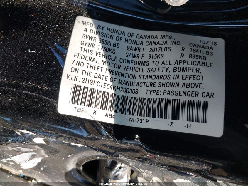 • 2HGFC1E54KH700308