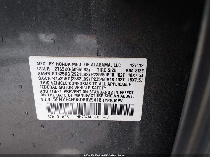 • 5FNYF4H95DB029416