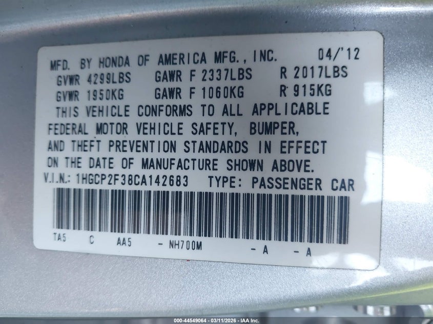 • 1HGCP2F38CA142683