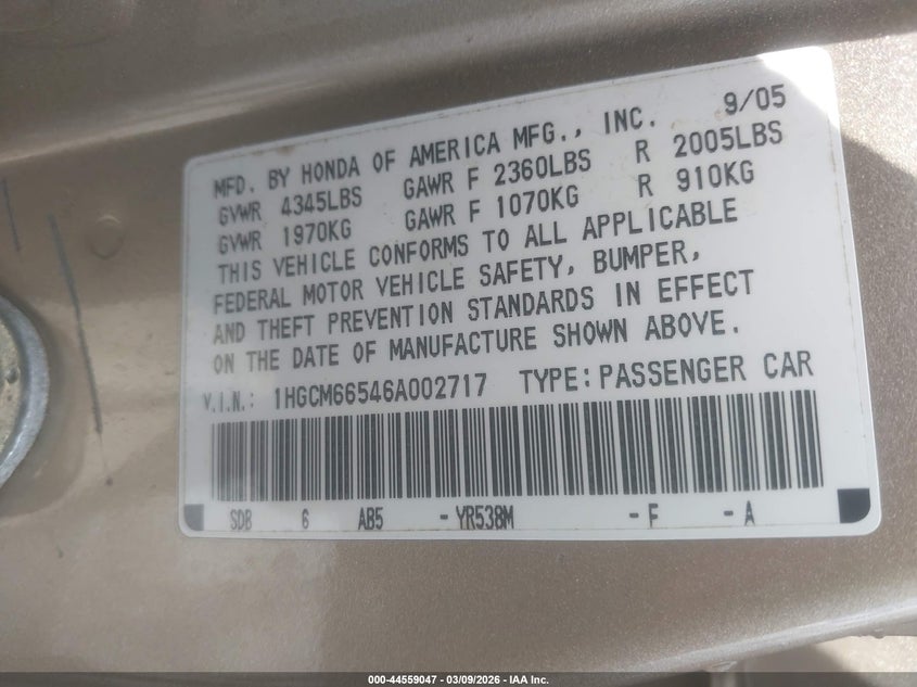 • 1HGCM66546A002717