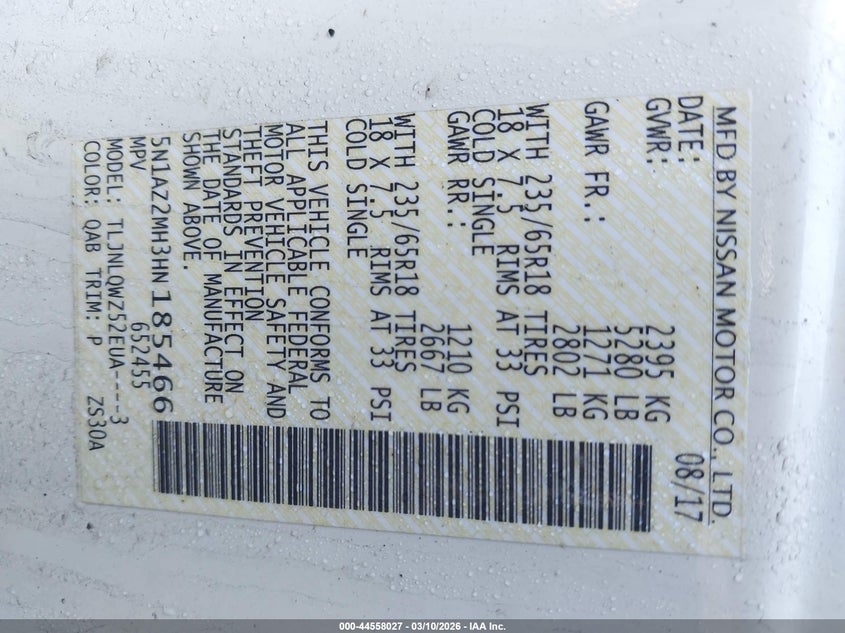 • 5N1AZ2MH3HN185466