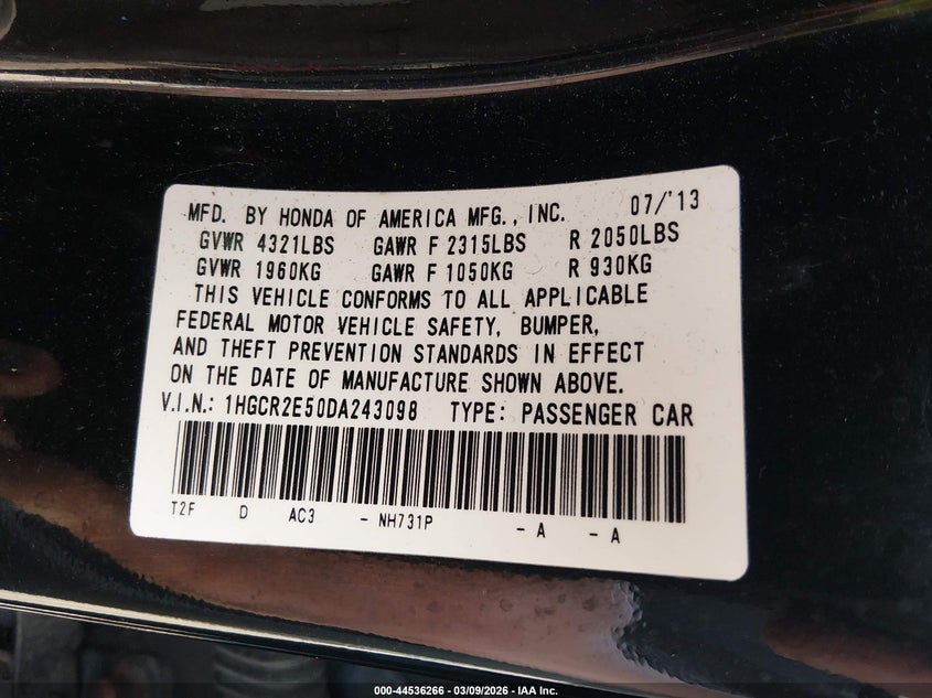 • 1HGCR2E50DA243098