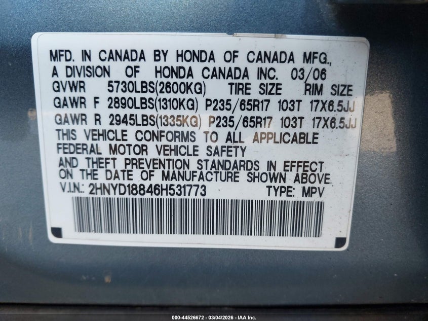 • 2HNYD18846H531773