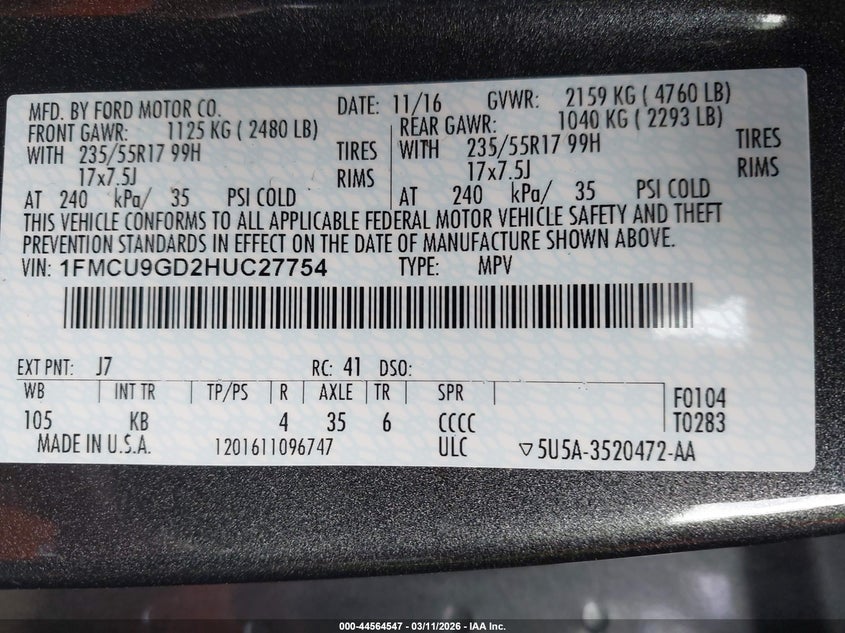 • 1FMCU9GD2HUC27754