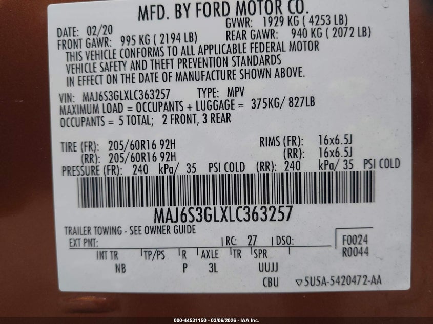 • MAJ6S3GLXLC363257