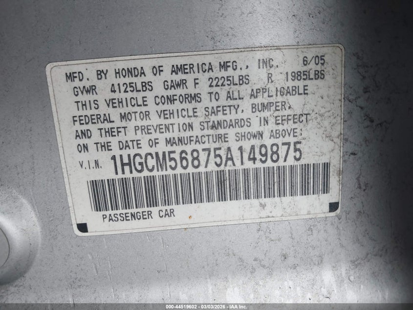 • 1HGCM56875A149875