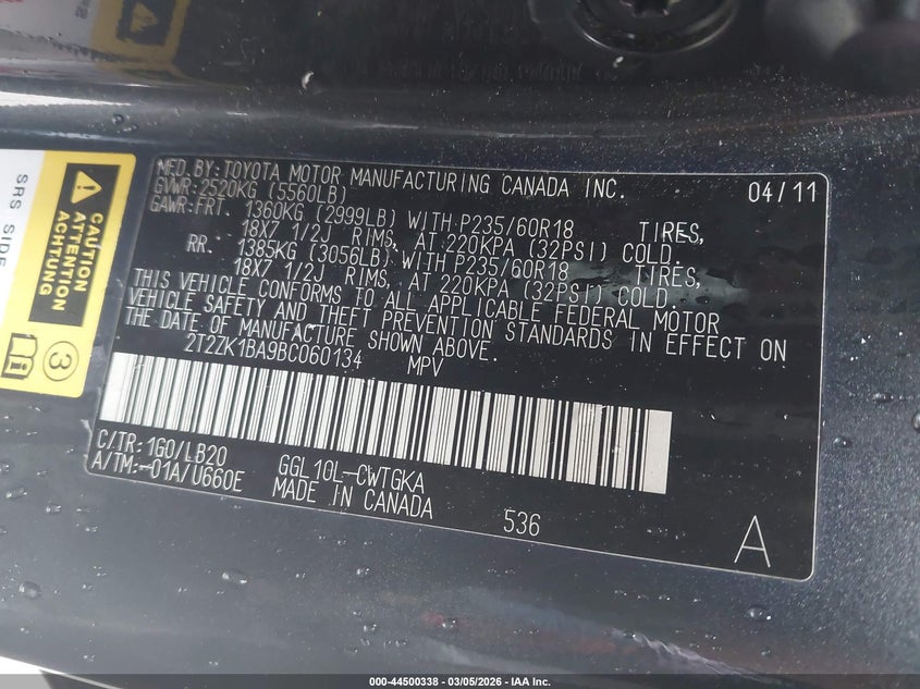 • 2T2ZK1BA9BC060134