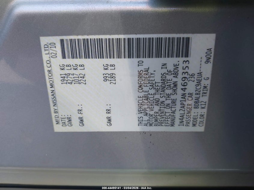 2010 NISSAN ALTIMA 2.5 S for Sale in East Taunton, MA