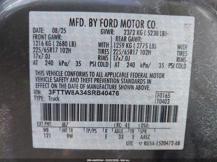 • 3FTTW8A34SRB40476