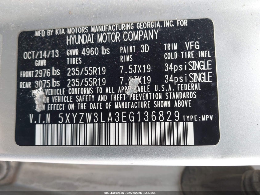 • 5XYZW3LA3EG136829