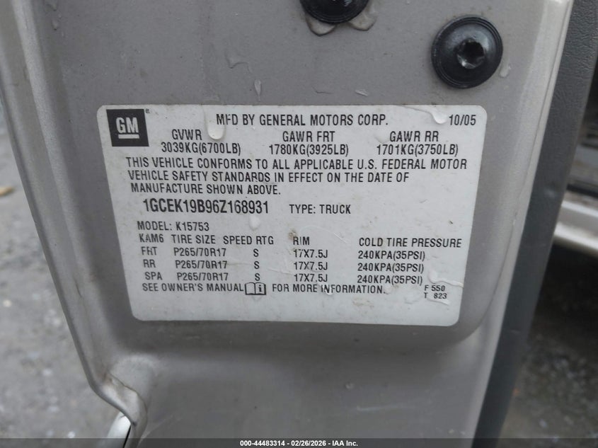 • 1GCEK19B96Z168931
